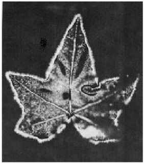 در این عکس برداری؛ هرچه از زمان کنده شدن برگ از درخت میگذرد هاله برگ کوچک و کوچکتر میشود تا پس از مرگ برگ به طور کامل از بین میرود. در آزمایش دیگری پس از عکسبرداری از برگ بخشی از آن بریده میشود اما هاله آن در عکس مشخص میباشد تا پس از مدتی که از بریدن آن قطعه از برگ میگذرد اثر هاله آن نیز از بین میرود.